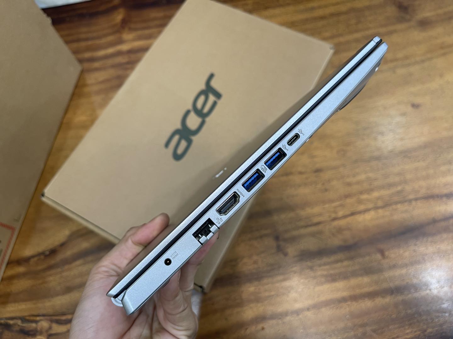 Cổng kết nối được trang bị trên chiếc laptop Acer Aspire bao gồm USB 3.2, USB Type C, HDMI, Jack tai nghe 3.5 mm,… và mình cảm thấy là nó đã quá đầy đủ với những người làm việc văn phòng như mình.