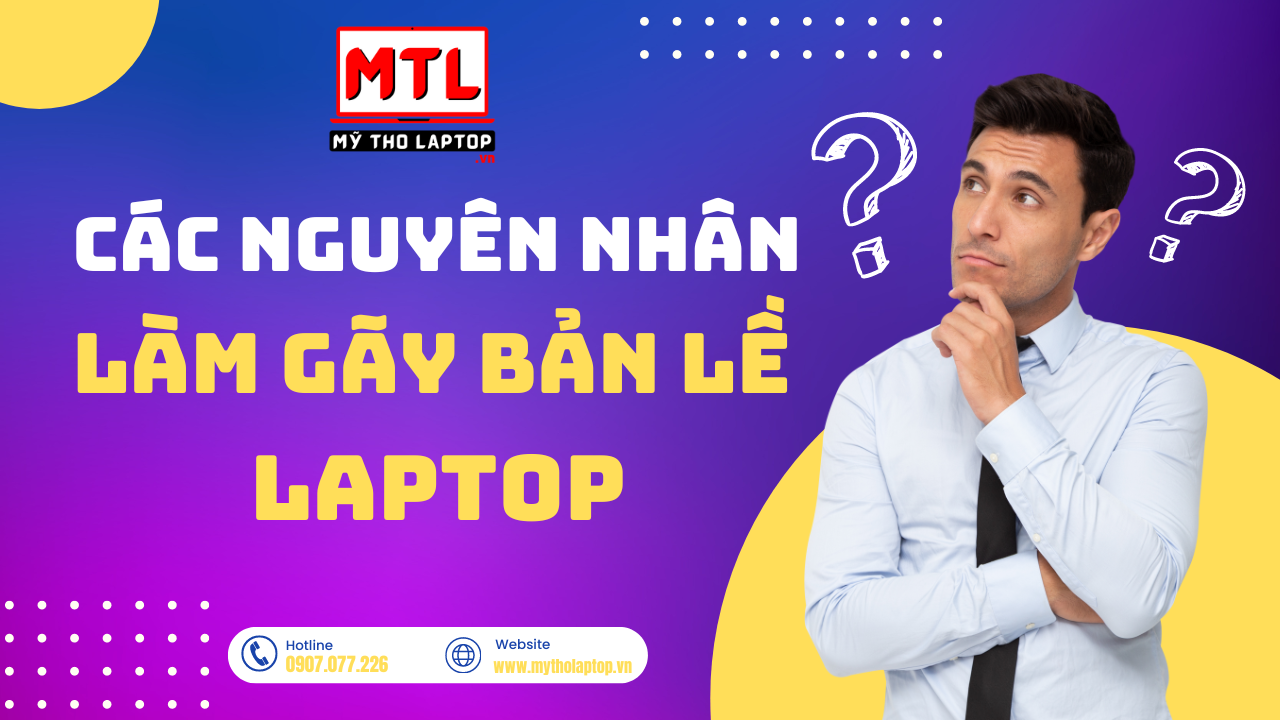 Bản lề laptop có thể gãy do nhiều lý do, bao gồm sử dụng không cẩn thận, áp lực không đều lên màn hình (ví dụ: đóng mạnh nắp laptop), hoặc tuổi thọ bản lề không còn như trước.